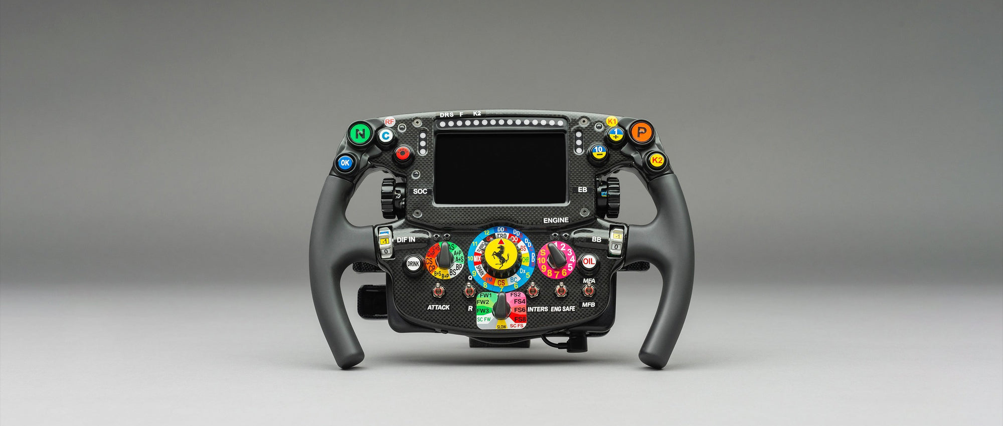 A full size precision replica of the Ferrari SF16-H steering wheel with working buttons, switches and paddles, as piloted by Sebastian Vettel and Kimi Räikkönen.