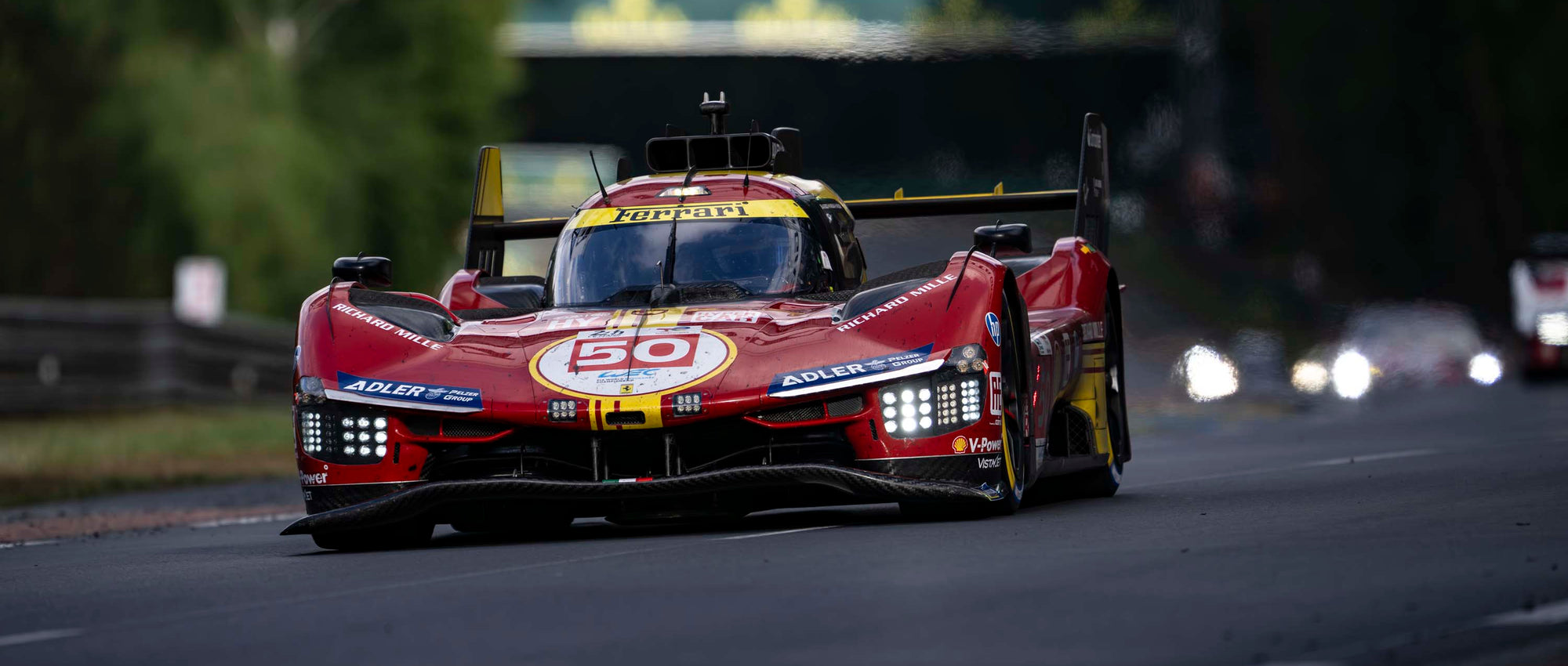 For the 2024 season, Ferrari AF Corse introduced a third 499P: the #83, raced by official Ferrari drivers Yifei Ye and Robert Shwartzman, and FIA WEC LMP2 champion and Formula 1 race winner Robert Kubica. It was at Le Mans again that the 499P would shine: this time, it was Fuoco, Molina and Nielsen in the #50 who registered outright victory, claiming Ferrari’s eleventh success at the race. The #83 earned a victory at the Lone Star Le Mans in Texas, holding a charging Toyota back to win by just 1.780s, the second closest finish between rival manufacturers in WEC history. In an ever-increasingly competitive championship featuring nine separate manufacturers, the team remained in the fight for the title until the final race of the season, ultimately finishing behind Toyota and Porsche. The #50 crew finished second in the Drivers’ Championship, whilst the #51 and #83 crews were separated by just two points in eighth and ninth positions.