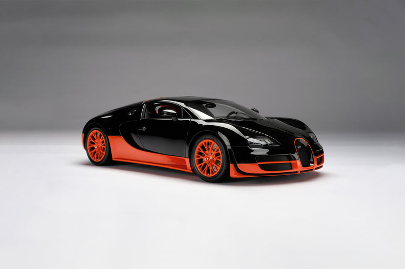 This fine model of the Bugatti Veyron Super Sport has been handcrafted and finished in our workshops with the co-operation and assistance of Bugatti regarding original finishes, materials, archive imagery and drawings. The use of original CAD and supremely accurate digital scanning of the original car has allowed us to perfectly recreate every detail at scale. Furthermore, the prototype model has undergone detailed scrutiny by the manufacturer’s engineering and design teams to ensure complete accuracy of representation.
