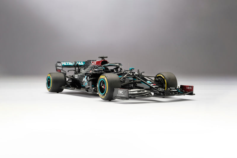 这款由梅赛德斯-AMG F1 W11 EQ Performance精心打造的1:18比例模型基于刘易斯·汉密尔顿和瓦尔特利·博塔斯在2020年10月25日的Heineken Grande Prémio De Portugal方程式赛车上所驾驶的赛车。大奖赛将在波尔蒂芒举行,这是自1996年以来的首次葡萄牙大奖赛,在汉密尔顿成为一级方程式赛车史上最成功的车手的那一刻,这场比赛将永远铭记在心:92场胜利,动人他在榜单上超过了迈克尔·舒马赫(Michael Schumacher),并在历史书中巩固了自己的名字。