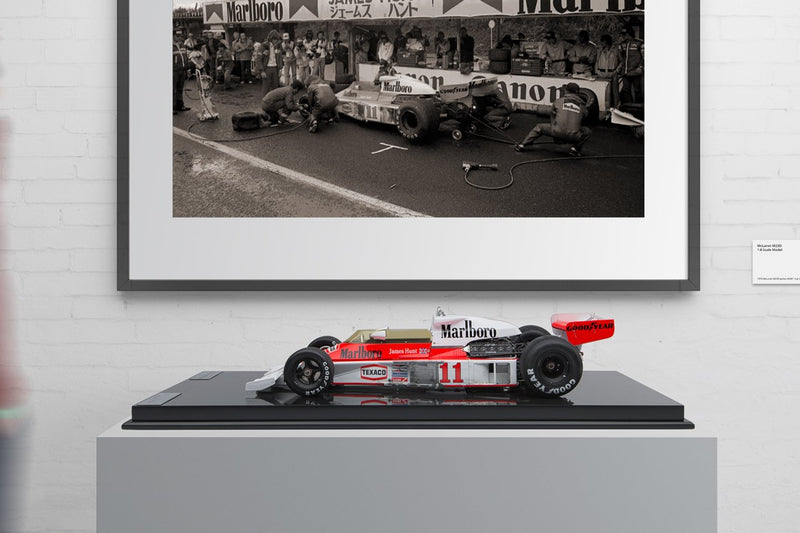 LIMITED EDITION OF 3 RACE WEATHERED 1976 MCLAREN M23D MODELS WITH ARCHIVE PRINT - SOLD OUT